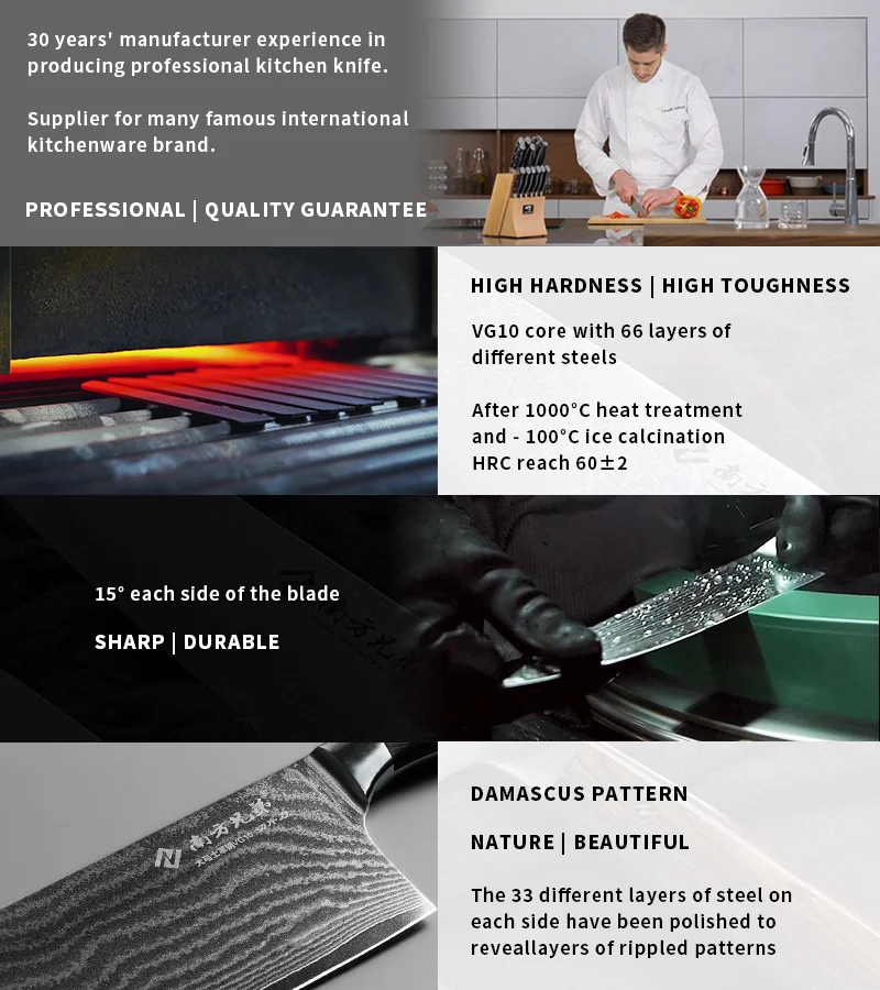 To ensure the knife quality, we have a laboratory to check each raw material from our suppliers, and more than 40 QC staff inspects every process and product before shipment. Our attention to details has attracted a growing list of customers from Europe and the USA. We also welcome your third-party inspectors for your peace of mind. OEM & ODM orders are welcome. We have been supporting many customers to win success, including many famous brands of knives in Europe and the USA.
