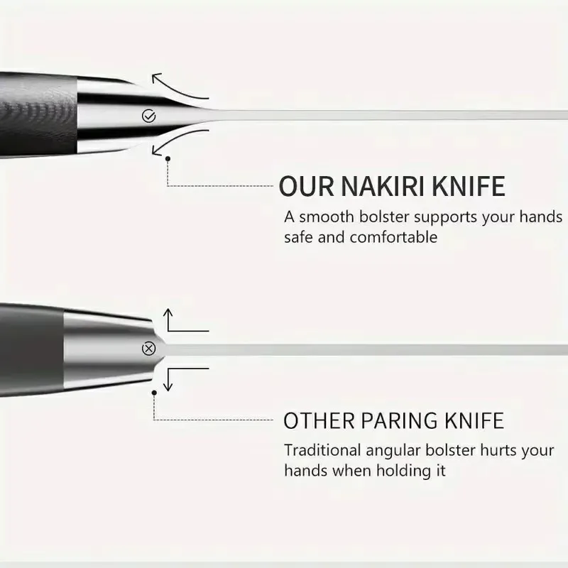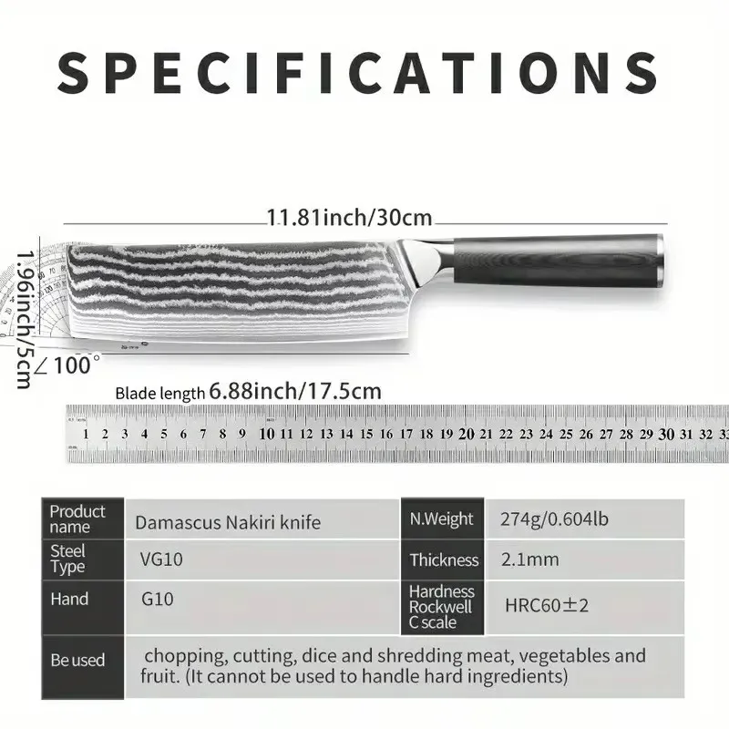 3. Sharpness: Finely ground through multiple processes, the blade is extremely sharp for easily cutting various ingredients. knife suitable for cutting meat vegetable fruit,etc (Note: Can not chop bones or cut frozen meat). Both home and professional users can enjoy the ultimate cutting experience.