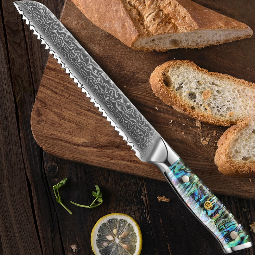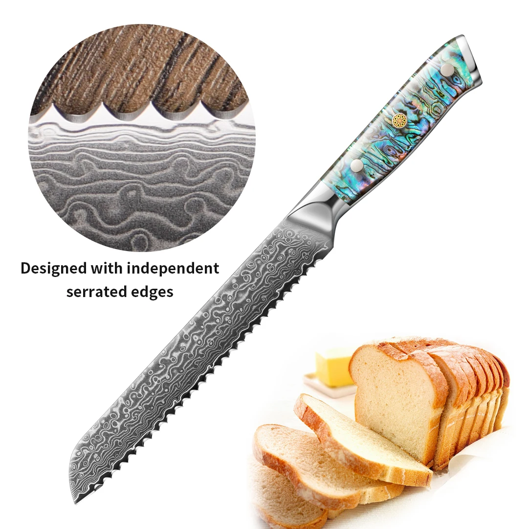 Product Name: 67 Layers Damascus Abalone Shell Handle Bread Knife