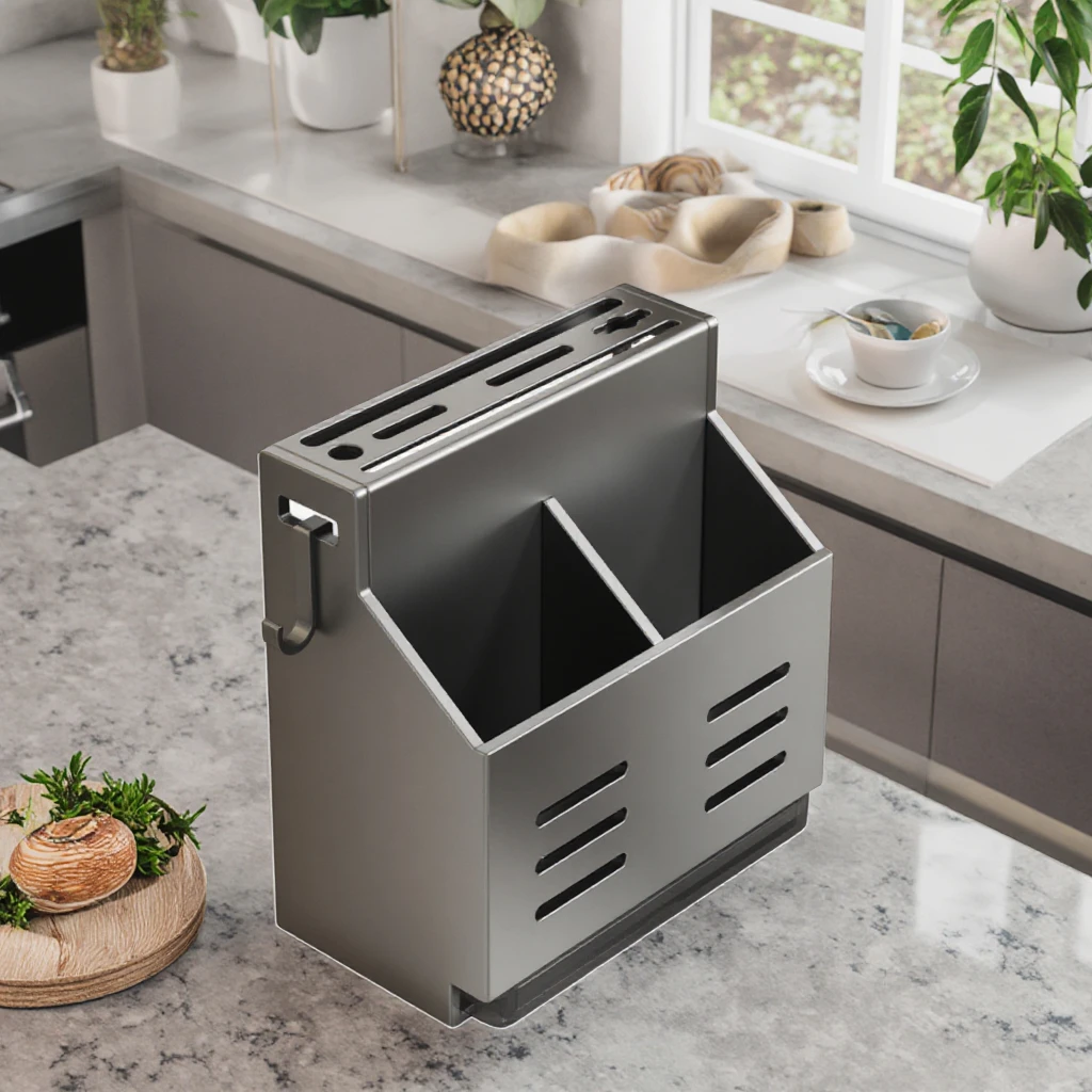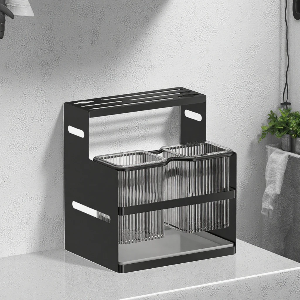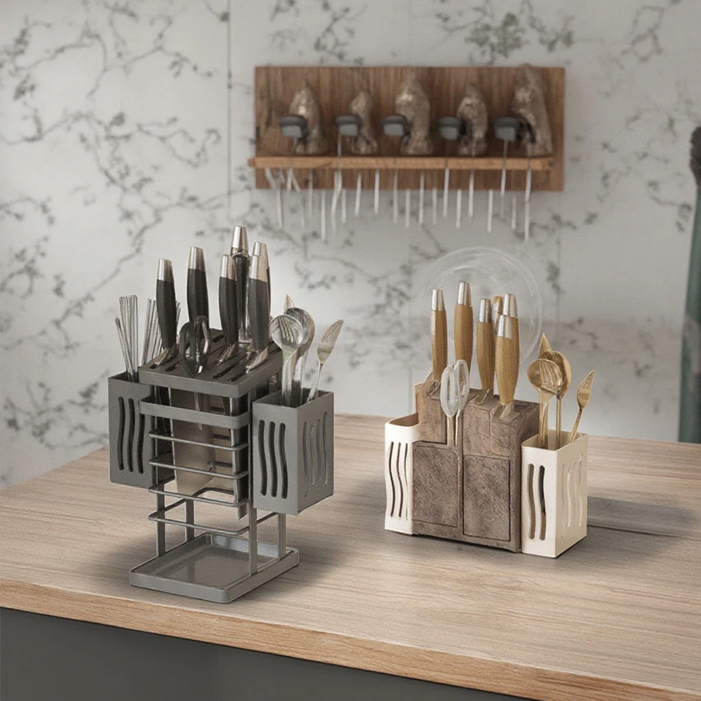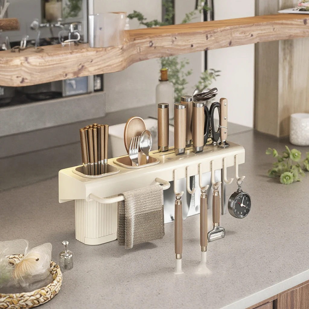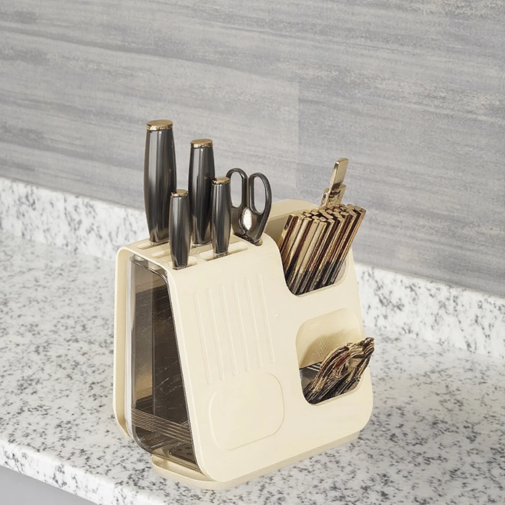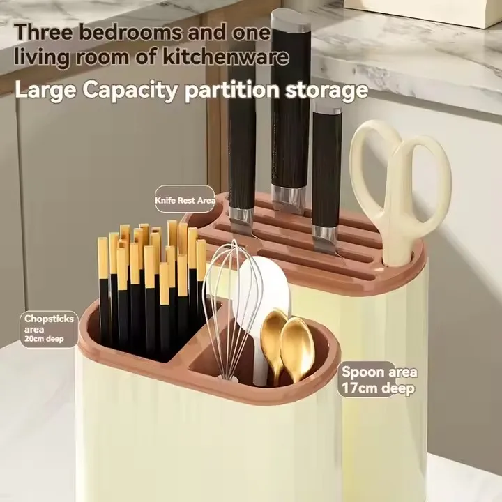 Kitchen Knife Holder with Drain Household Cutting Board Storage Rack Countertop Integrated Chopsticks Tube Tool Rack
