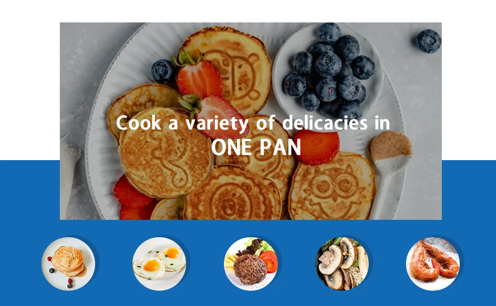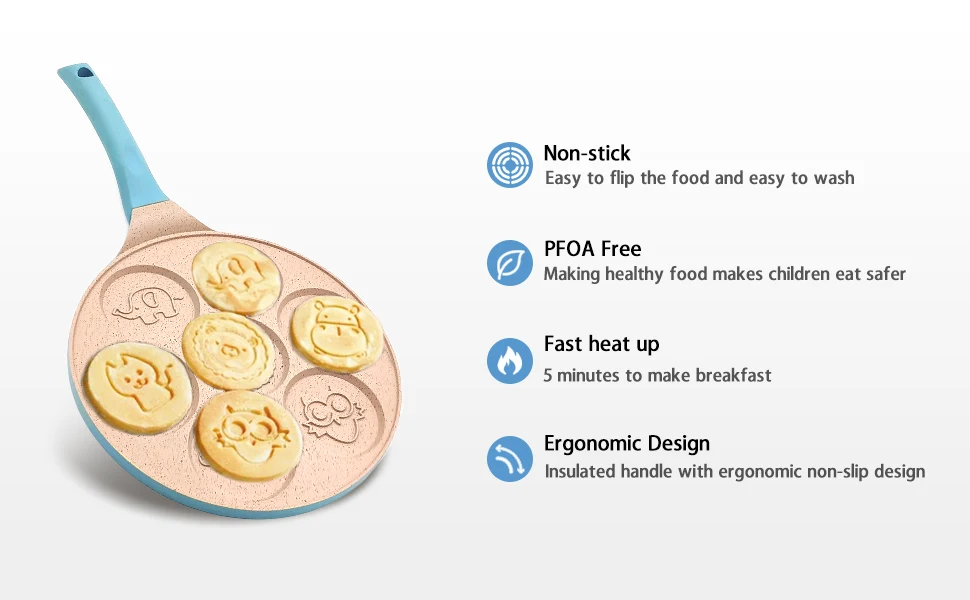 Practical Kitchen Accessories Mini Round Shape Aluminum Pancake Pan Animal Graphics Non-Stick Egg Waffle Frying Pan