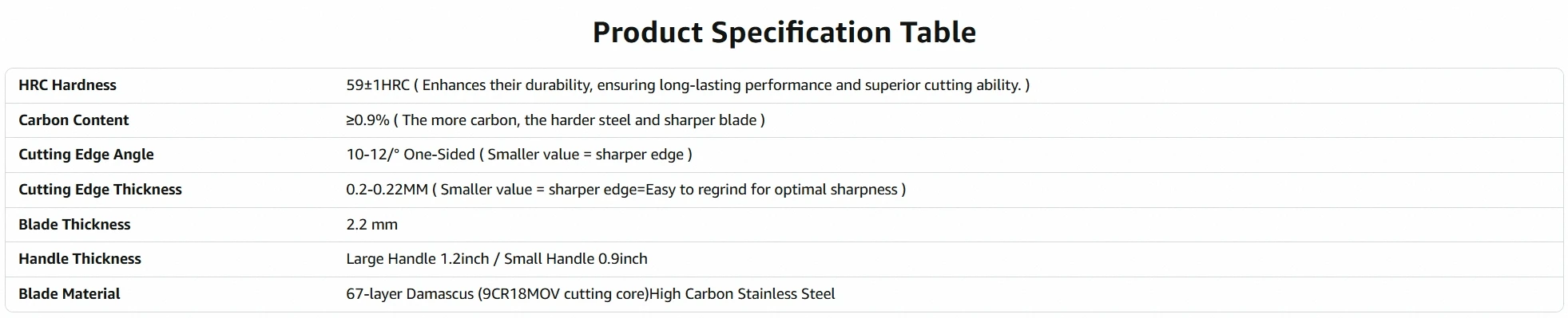 Blade Hardness: HRC59±2