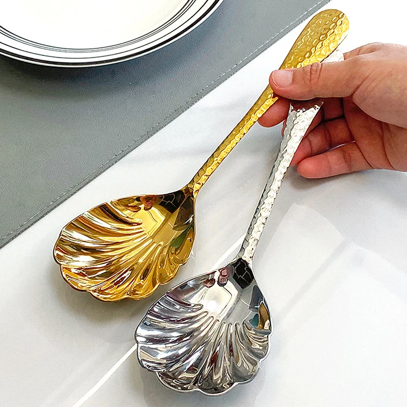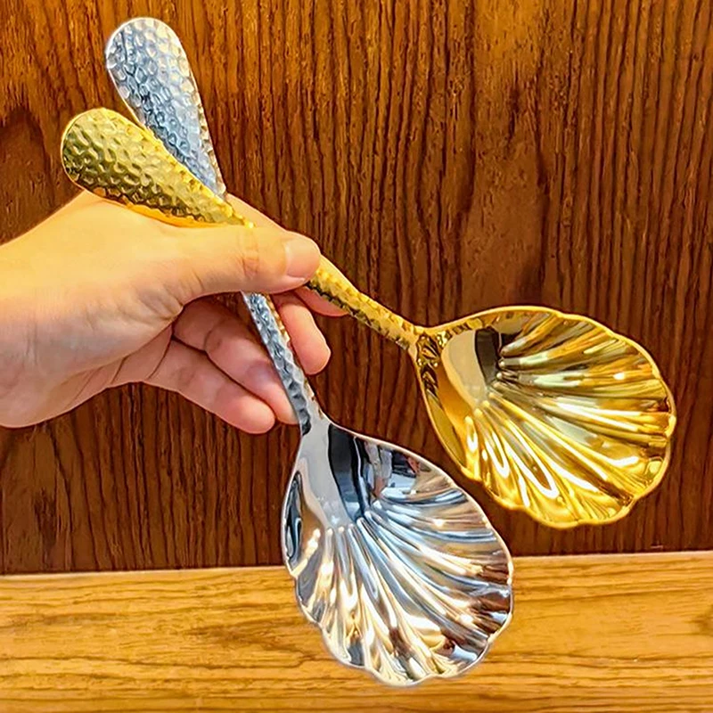 Shell-Shaped Serving Spoons Stainless Steel Vegetable Spoons Large Fan-Shaped Soup Spoons Suitable For Family Parties Restaurant