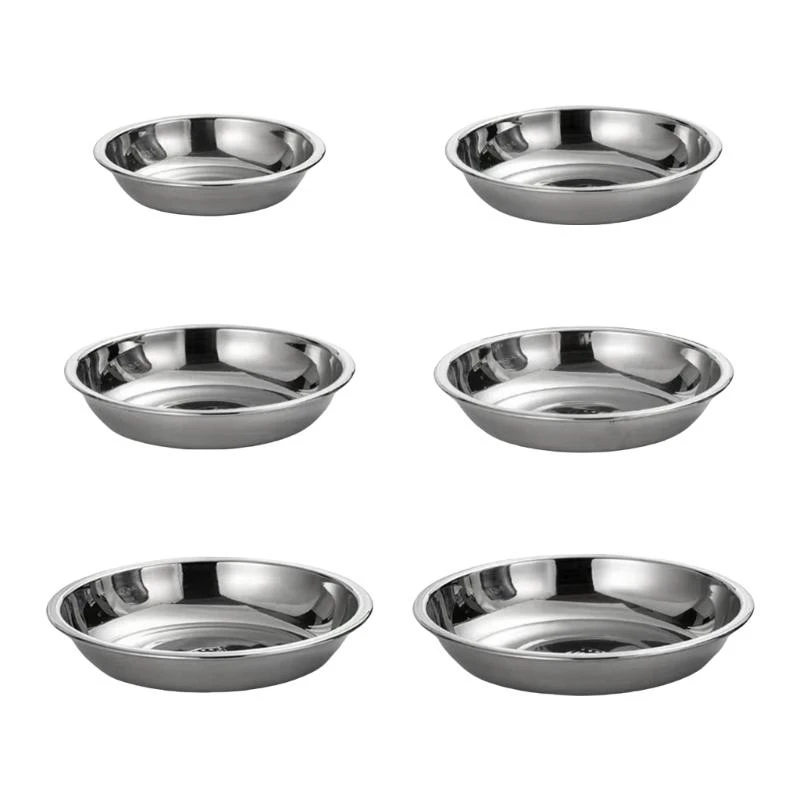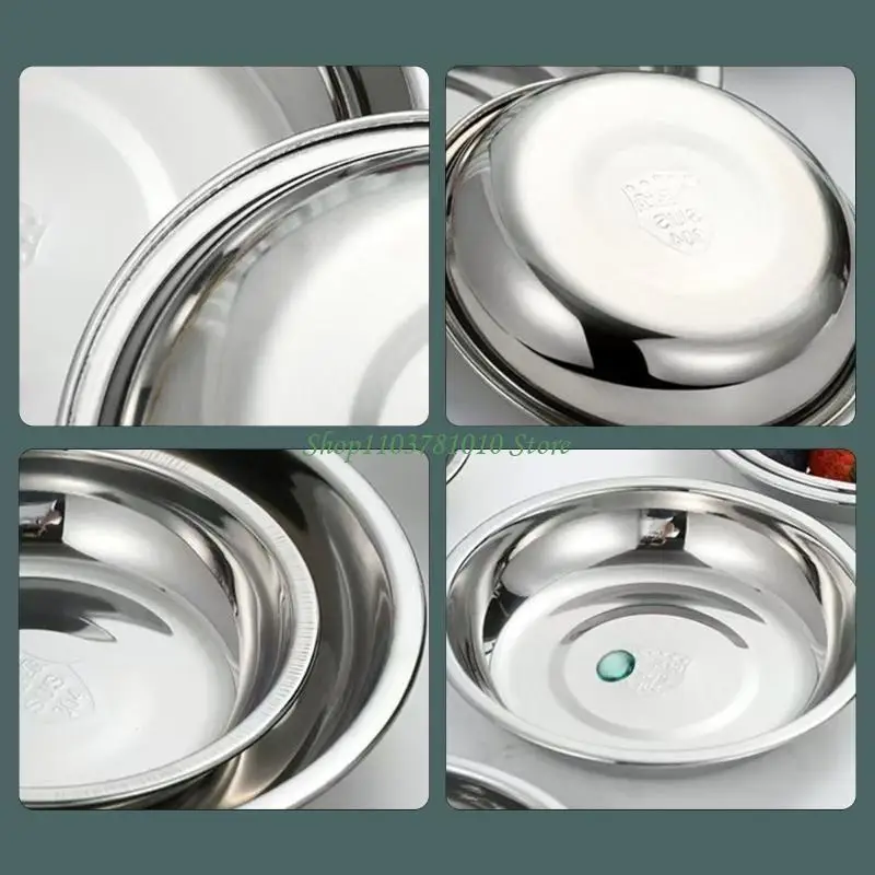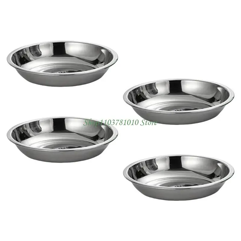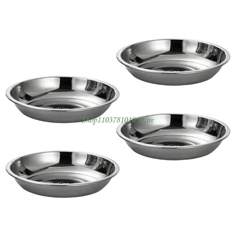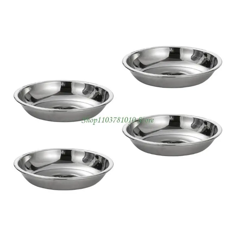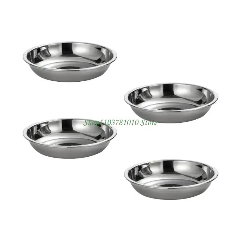 U55D 4Pcs Stainless Steels Serving Dishes Round Sauce Dipping Bowl Fruit Dessert Plate Serving Tray Flat Plate Dinnerware
